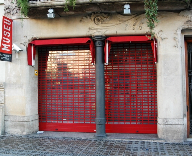 Porte à enroulement mod. SATEN dans le “Musée du Modernisme » de Barcelona, rue Balmes. Avec cette porte le client a voulu augmenter le niveau de sécurité tout en permettant une vision de l’intérieur.